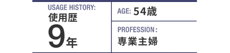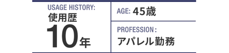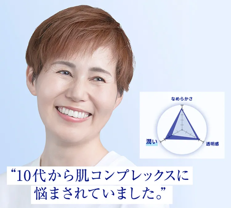 お酒を飲んで、化粧を落とさず寝てしまう日もある中で、お店にお越しになるお客様に肌が綺麗だと声をかけていただくことが多いです。使い続けて9年ほど。エステやサプリなどを使っているか疑われるくらい、理想の肌を保てています。