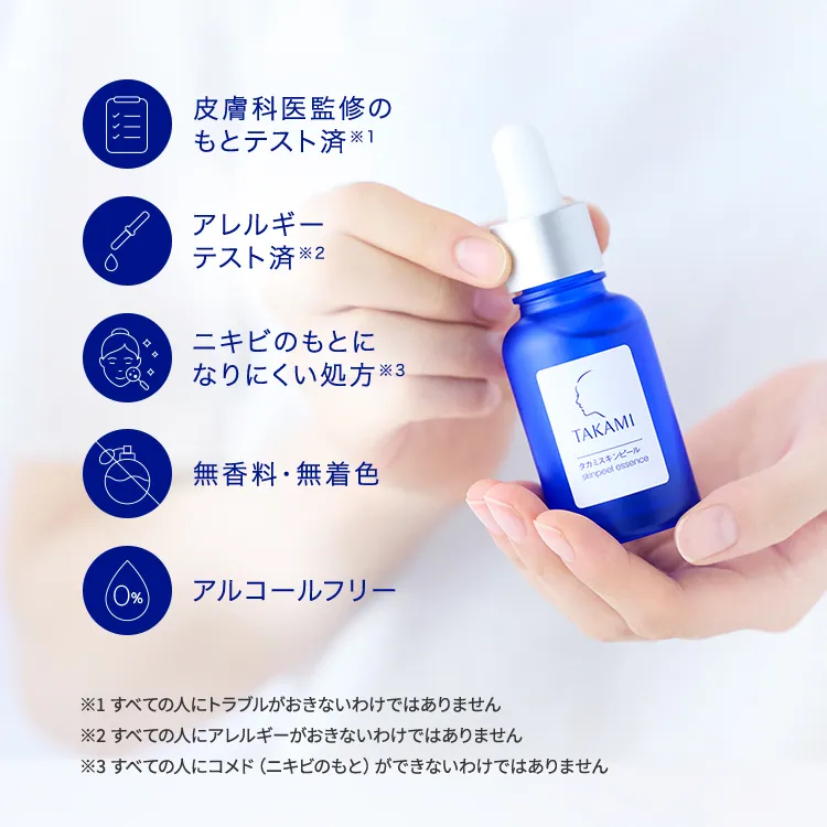 タカミスキンピールは、何か一つの悩みだけにアプローチするのではなく、角質の生まれ変わりのリズムに寄り添うお手入れをすることで、すこやかな美しい肌へ導きます。なめらかさ、肌の柔らかさ、毛穴の目立ち※1、キメ、透明感※2、ツヤ感、みずみずしさ、ハリ・弾力感などでお悩みの方や、特にトラブルはなくてもすこやかなお肌を保ちたい方などにもおすすめです。